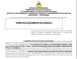 Se antecipando a Lei que deve ser aprovada na ALEMA, sindicato das escolas particulares assina TAC com o Ministério Público O Sindicato dos Estabelecimentos de