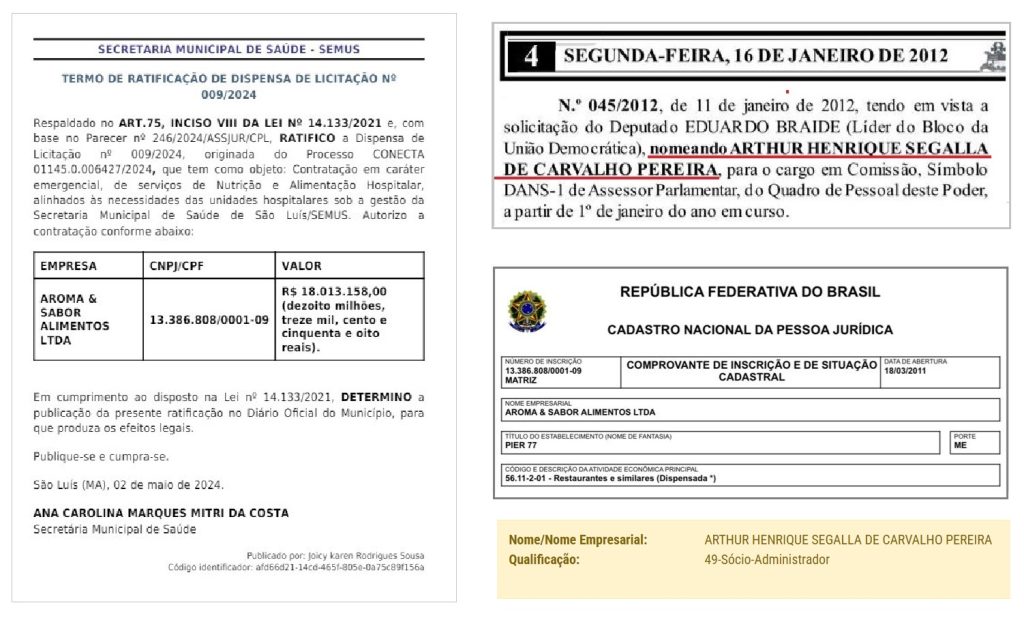 Quem ainda lembra do esquema “Sorrisso”, que era assessor e amigo do prefeito de São Luís, que ganhou uma bolada de R$ 18 Milhões na Secretaria Municipal de Saúde – SEMUS, para prestar supostos serviços de alimentação hospitalar???? Isso foi no ano passado (2024), a Contratação da empresa do amigo de Braide, Aroma e Sabor “Pier 77” ocorreu em “regime emergencial” por meio de Dispensa de Licitação 009/2024 na SEMUS.