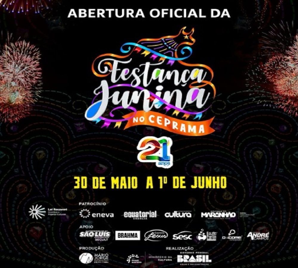 A Festança Junina é idealizada e produzida por Mário Jorge, e conta com apoio do Governo do Maranhão, por meio das Secretarias de Estado do Turismo (Setur) e da Cultura (Secma), a 21ª Festança Junina no Ceprama tem entrada Gratuita e promete agitar a capital maranhense durante três dias de shows e apresentações.