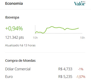 Economia agora: IBOVESPA opera em alta; dólar e euro caem
