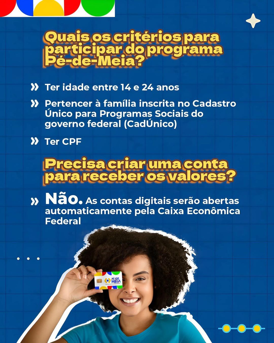 Também são elegíveis os jovens matriculados na Educação de Jovens e Adultos (EJA) de 19 a 24 anos que se enquadrem nas mesmas condições citadas acima.